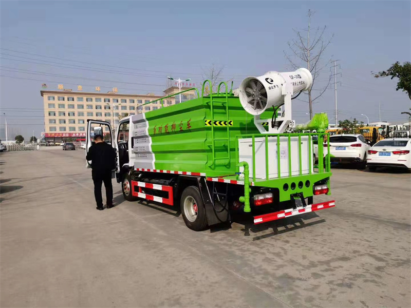 一. 產品簡述及車型圖片 1.產品簡述:縱昂牌 CLT5042TDYEQ6 型多功能抑塵車標配前噴(鴨嘴)、后對 沖、后灑、側噴、后置式工作平臺,平臺上配置綠化水炮(可 360°旋轉,既可 以調成柱狀,也可以調成霧狀),配備優質大功率專用灑水泵(可自吸自排, 可從河里或池塘抽水到罐體),取力器,雜物過濾網,消防接口,自流球閥系統、 取力器、球閥、濾網均為國家標準產品,主管道加粗,法蘭墊、法蘭盤加厚, 大通徑球閥。整體具備性能優良安全可靠、效率高、流量大、維修方便等特點。 2.車型圖片: