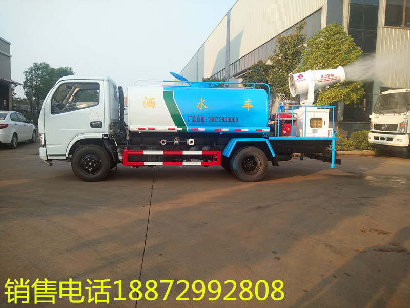 隨底盤選裝駕駛室;品名:水,密度:1000千克/立方米,有效容積4.09立方米,罐體尺寸(長×寬×高)(mm):3400×1600×1100;ABS吸程≧7米,灑水寬度≧14-16米,射程≧25-30米,引水時間<5min,流量60m3/h。前沖(噴)、后灑、帶側噴(花灑)、帶后工作平臺、平臺上安裝綠化灑水高炮(炮噴射形狀可調節:直沖、大雨、中雨、毛毛雨、霧狀、可連續調節,360°旋轉),配消防接口,自流閥,濾網,帶自吸自排功能。配備大功率專用灑水泵,泵可自吸自排,安裝過濾網,帶消防接口,可通過消防栓進水,帶自流閥,隨車選裝20米綠化卷盤,可噴灑農藥,罐體金屬漆。罐體有橢圓和方圓罐兩種,可根據用戶的要求定做 發動機可選,云內,朝柴 ,錫柴,全柴