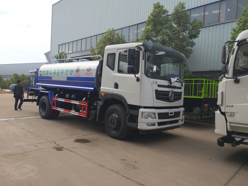 東風抑塵車上裝配置:配備大功率灑水泵,具有自吸自排功能,垂直吸程>6米。帶前部沖洗路面噴灑裝置、后部扇形降塵噴灑裝置,兩側面噴灑裝置,后部工作平臺、平臺上安裝綠化灑水炮(炮噴射形狀可調),可調直沖狀、大雨、中雨、毛毛雨,可連續調節,自流閥及消防接頭各1個、水管3米2根。罐體內做環氧樹脂防腐處理。