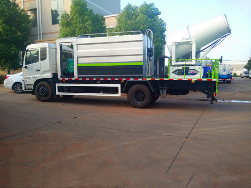 仰俯角度 -10°—90° 旋轉角度 360°往返可調 ,射程80米-120米,可連續(xù)工作4小時以上,細化水霧,達到降塵降溫效果,除噴霧以外,該車還具備常規(guī)灑水車的使用功能,如前沖后灑和尾部高壓水炮,多功能抑塵車高壓水泵噴出的水霧射程可達100米。
