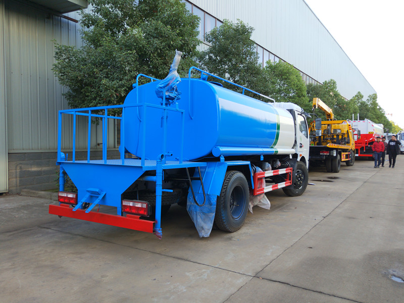 產品概述:該車型為東風公司國五 排放標準。灑水車專用部分由罐體、水泵、取力器、傳動軸、球閥、噴灑裝置等部件組成。采用國家定型產品,具有性能穩定、工作可靠、通用適配等特點。灑水車罐體結構為橢圓形或方圓形,采用武鋼優質碳鋼制作,先進的對焊接工藝,罐體內設防蕩防波隔板,下端有通孔,罐體成型后高壓氣體試漏檢測,使罐體具有強度高、重心穩、車輛運載安全平穩等特點