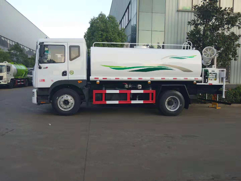 東風(fēng)多利卡D9噴霧抑塵灑水車_抑塵車多少錢一輛;我公司生產(chǎn)的東風(fēng)多利卡D9噴霧抑塵灑水車下線檢測了。車款車型選用東風(fēng)多利卡D9系列單橋底盤,3950mm軸距,新款排半駕駛室,康明斯ISB180 50六缸發(fā)動機(jī),國五排放,250mm車架,氣制動,動力轉(zhuǎn)向,離合助力,空調(diào),電動窗,中控鎖,ABS,8噸后橋,4噸前橋,東風(fēng)六檔變速箱,9.00R20鋼絲胎。選配30米噴霧抑塵機(jī)。罐體用5MM碳鋼板制作,罐內(nèi)隔板具有防波作用,以減低汽車行駛時(shí)罐體液體的沖擊。整車帶一個(gè)專用灑水泵(垂直吸程6米),灑水寬度14米,射程28米。多功能灑水車配備2個(gè)前沖(噴)(能將路面泥巴、塵土、垃圾沖干凈);2個(gè)后灑(能均勻地將水灑在路面,一次灑水寬度14米)、2個(gè)側(cè)噴(花灑)(能均勻地將路旁綠化帶澆灌)、帶1個(gè)后工作平臺,平臺上安裝1個(gè)綠化灑水高炮(灑水炮可全方位旋轉(zhuǎn),可連續(xù)調(diào)成直沖狀、大雨、小雨、毛毛雨,霧狀可調(diào)節(jié)沖洗高大樹木),引水時(shí)間<5min,流量90m3/h。帶1個(gè)消防接頭,帶1個(gè)自流閥,1個(gè)過濾裝置、人性化爬梯及側(cè)防護(hù)欄,安裝灑水音樂喇叭。