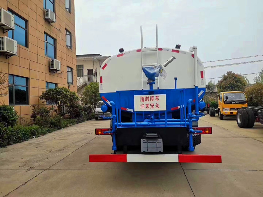 灑水車功能說明:垂直吸程7米,灑水寬度14-16米,射程28,引水時間<5min。前沖(噴)、后灑、帶側噴(花灑)、帶后工作平臺、平臺上安裝綠化灑水高炮(炮噴射形狀可調節:直沖、大雨、中雨、毛毛雨、霧狀、可連續調節,360旋轉),配消防接口,自流閥,濾網,帶自吸自排功能,選配20米綠化消防卷盤(選裝)。