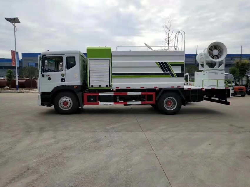 灑水車吸程≧7米,灑水寬度≧14-16米,射程≧25-40米,引水時間<5min,流量60m3/h。前沖(噴)、后灑、帶側噴(花灑)、帶后工作平臺、平臺上安裝綠化灑水高炮(炮噴射形狀可調節:直沖、大雨、中雨、毛毛雨、霧狀、可連續調節,360°旋轉),配消防接口,自流閥,濾網,帶自吸自排功能。配備大功率專用灑水泵,泵可自吸自排,安裝過濾網,帶消防接口,可通過消防栓進水,帶自流閥,此車尾部加裝大功率農藥噴灑炮,
