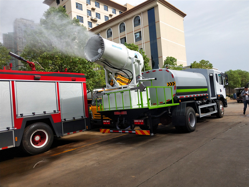 專用部分:帶前沖、后灑、側(cè)噴、后工作平臺、尾部帶綠化炮,帶自吸自排灑水泵,后工作平臺高壓水炮直沖射程25-30米(可調(diào)成:直沖狀、大雨、中雨、小雨、毛毛雨),整車帶消防接頭、自流閥。附送2根水管。加裝30型霧炮,帶8千瓦柴油發(fā)電機(jī)組,霧炮可以遙控操作。