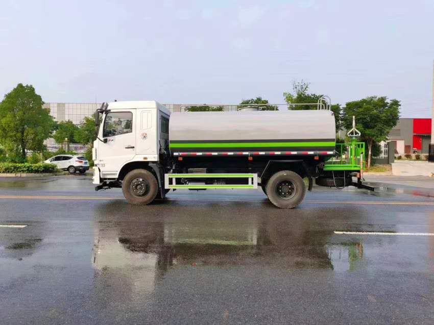 國六東風大多利卡12方灑水車整車說明:國六玉柴200馬力/康明斯210馬力發(fā)動機,法士特C6J75T6擋變速箱,295/80R22.5真空胎,前橋3.9噸,后橋8噸,250雙層大梁,方向助力,斷氣剎,離合助力,ABS,電動窗,氣囊坐椅,空調,罐體采用4mm厚武鋼專用板材制作,實際容積14立方,該灑水車標配前沖(噴)后灑,灑水寬度≥14米,帶側噴,罐體后帶工作平臺,平臺上安裝綠化灑水炮,灑水炮可全方位旋轉,射程≥28米,可連續(xù)調成直沖狀、大雨、小雨、毛毛雨,帶安全護欄,配備專用灑水泵,泵可自吸自排,安裝過濾網(wǎng),帶消防接口,可通過消防栓進水,帶自流閥,具有自吸自排功能,垂直吸≥7米;