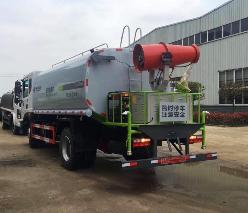 前沖功能*強:一般用于路面灑水,前沖水壓力大,能將路面泥土、塵土、垃圾沖干凈,沖洗寬度大于14米,是*主要灑水功能。
