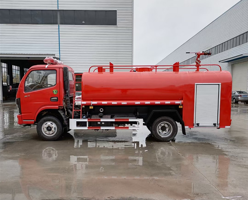 5方消防灑水車 配備大功率專用灑水泵,泵可自吸自排,安裝過濾網,帶消防接口,可通過消防栓進水,帶自流閥,隨車選裝20米綠化卷盤,可噴灑農藥,罐體金屬漆。罐體有橢圓和方圓罐兩種,可根據用戶的要求定做