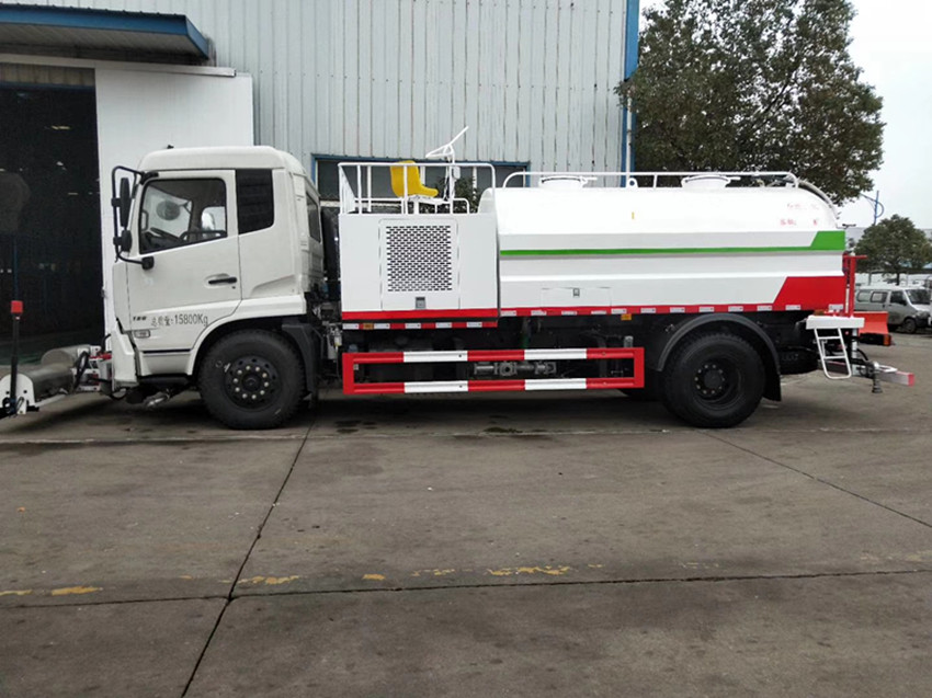 灑水車吸程≧7米,灑水寬度≧14-16米,射程≧25-40米,引水時(shí)間<5min,流量60m3/h。前沖(噴)、后灑、帶側(cè)噴(花灑)、帶后工作平臺(tái)、平臺(tái)上安裝綠化灑水高炮(炮噴射形狀可調(diào)節(jié):直沖、大雨、中雨、毛毛雨、霧狀、可連續(xù)調(diào)節(jié),360°旋轉(zhuǎn)),配消防接口,自流閥,濾網(wǎng),帶自吸自排功能。配備大功率專用灑水泵,泵可自吸自排,安裝過濾網(wǎng),帶消防接口,可通過消防栓進(jìn)水,帶自流閥,隨車選裝20米綠化卷盤,可噴灑農(nóng)藥,罐體金屬漆。罐體有橢圓和方圓罐兩種,可根據(jù)用戶的要求定做