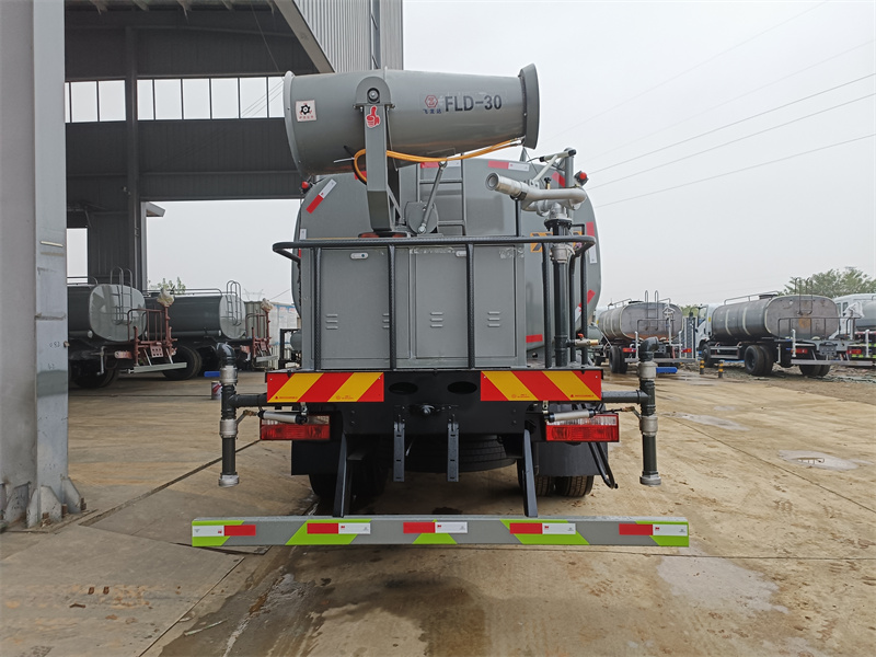 東風D9霧炮灑水車整車型號 CLT5160TDYEQ6 型多功能抑塵車 2 發(fā)動機型號 D4.0NS6B195 3 發(fā)動機馬力/功率 康明斯 195 馬力/143KW 4 發(fā)動機排量 4000ML 5 變速箱 法士特 8 檔(帶高低檔) 6 輪胎規(guī)格 275 真空胎 7 軸距 3950 8 總質(zhì)量 16200KG 9 整備質(zhì)量 6750KG 10 額定載質(zhì)量 9255KG 11 整車尺寸(長×寬×高) 7.75*2.5*3.2 12 罐體容積 12 方 13 燃料種類 柴油 14 排放標準 國六 15 水泵型號 60/90 16 罐體材質(zhì) Q235 碳鋼. 灑水車產(chǎn)品功能展示 前沖鴨嘴 后灑 后對沖 高炮 高位花灑 側(cè)噴 霧炮