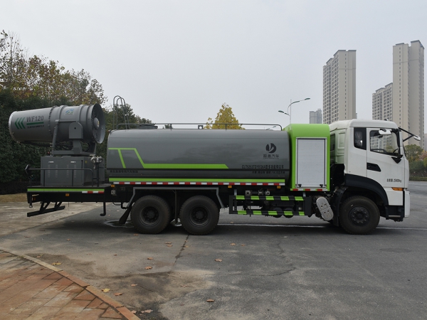 東風(fēng)天龍大型霧炮灑水車(chē)整車(chē)型號(hào) CLT5254TDYDF6A 型多功能抑塵車(chē) 2 發(fā)動(dòng)機(jī)型號(hào) D6.7NS6B290 3 發(fā)動(dòng)機(jī)馬力/功率 康明斯 290 馬力/213KW 4 發(fā)動(dòng)機(jī)排量 6700ML 5 變速箱 大同 7 檔 6 輪胎規(guī)格 295 真空胎 7 軸距 4350+1350 8 總質(zhì)量 25000KG 9 整備質(zhì)量 14250KG 10 額定載質(zhì)量 10555KG 11 整車(chē)尺寸(長(zhǎng)×寬×高) 10.65*2.5*3.8 12 罐體容積 18.3 方 13 燃料種類(lèi) 柴油 14 排放標(biāo)準(zhǔn) 國(guó)六 15 水泵型號(hào) 60/90 16 罐體材質(zhì) Q235 碳鋼. 產(chǎn)品功能展示 前沖鴨嘴 后灑 后對(duì)沖 高炮 高位花灑 側(cè)噴 霧炮