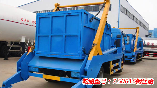 東風(fēng)多利卡擺臂式垃圾車,多利卡D7底盤,6檔變速箱,朝柴156馬力發(fā)動(dòng)機(jī),前橋2.5噸、后橋5噸,192mm變截面車架,7.50R16鋼絲胎,帶斷氣剎、ABS。
