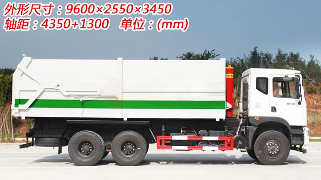 容積為20立方米。箱體形狀方形,材質邊4底4碳鋼,箱體后門液壓開啟,油缸舉升自卸,頂部標配密封,可選裝頂蓋液壓側開啟、前劃開啟。