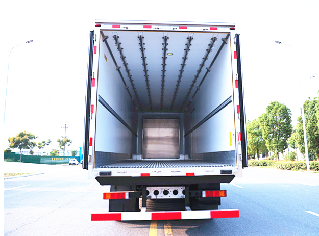 東風(fēng)天龍9米6冷藏車廂體配置為:斷橋隔溫工藝,整體結(jié)構(gòu)框架,內(nèi)外面料為3mm新款啞光玻璃鋼夾保溫層真空復(fù)合而成,廂體厚度為8cm,最新款鋁合金包邊型材,型材局部厚度為4mm(鋼制鉚釘加固),廂體內(nèi)部采用2個LED照明燈及廂體示寬燈,后門框不銹鋼材質(zhì),門框密封條為三元乙丙橡膠材質(zhì),加厚型不銹鋼合頁及鎖件;副梁為Q700車用大梁鋼,15mm厚大梁墊皮,加裝防撞膠塊,不銹鋼門鎖件,配后雙開門,副駕駛一側(cè)居中靠前開單側(cè)門一個,帶2個排水孔。