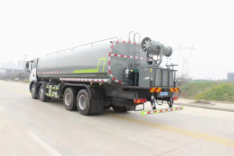 縱昂牌CLT5311TDYZZ6型多功能抑塵車標(biāo)配前噴(鴨嘴 ) 、后 對(duì)沖、后灑、側(cè)噴、后置式工作平臺(tái),平臺(tái)上配置綠化水炮(可 360°旋 轉(zhuǎn), 既可以調(diào)成柱狀,也可以調(diào)成霧狀),配備優(yōu)質(zhì)大功率專用灑水泵(可自吸 自 排,可從河里或池塘抽水到罐體),取力器,雜物過(guò)濾網(wǎng),消防接口,自流球閥 系統(tǒng)、取力器、球閥、濾網(wǎng)均為國(guó)家標(biāo)準(zhǔn)產(chǎn)品,主管道加粗,法蘭墊、法蘭盤(pán) 加厚,大通徑球閥。整體具備性能優(yōu)良安全可靠、效率高、流量大、維修方便 等特點(diǎn)。