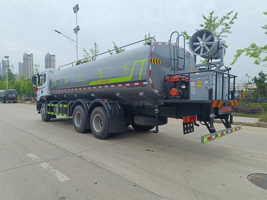 東風(fēng)新款22噸霧炮灑水車產(chǎn)品標配前噴(鴨嘴)、后沖、后灑、側(cè)噴、后置式工作 平臺,平臺上配置綠化水炮(可 360 °旋轉(zhuǎn),既可以調(diào)成柱狀,也可 以調(diào)成霧狀,更可以調(diào)成直沖狀、大雨、中雨、小雨、毛毛雨),配 備優(yōu)質(zhì)大功率專用灑水泵(可自吸自排,可從河里或池塘抽水到罐體), 取力器,雜物過濾網(wǎng),消防接口, 自流球閥系統(tǒng)、取力器、球閥、濾網(wǎng) 均為國家標準產(chǎn)品,主管道加粗,法蘭墊、法蘭盤加厚,大通徑球閥。 整體具備性能優(yōu)良安全可靠、效率高、流量大、維修方便等特點。