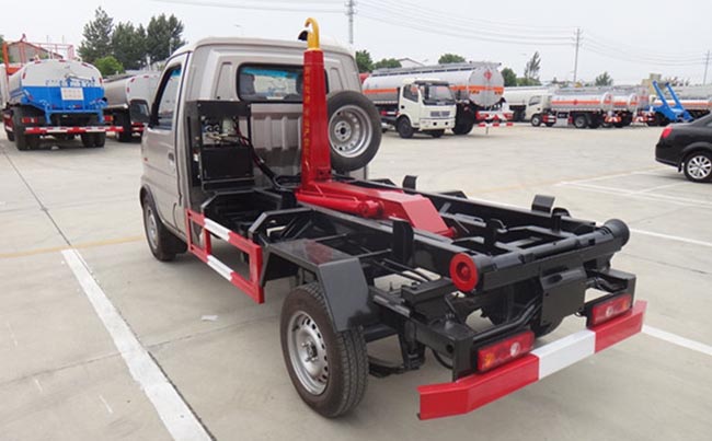 配套2~3立方米勾臂垃圾箱,高強度主勾臂,雙杠液壓,采用國產(chǎn)油泵、多路閥、液壓油缸、車身顏色根據(jù)客戶要求更改,尾部帶鎖緊裝置、滾輪。