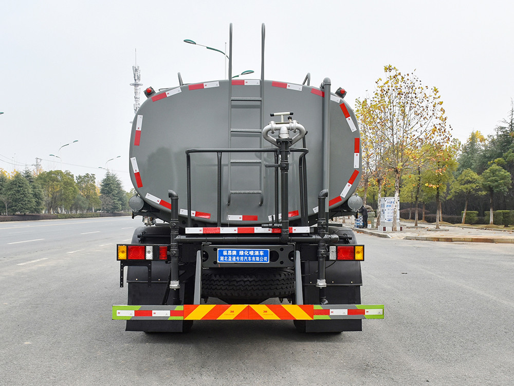 湖北盈通灑水車產(chǎn)品標配前噴(鴨嘴)、后沖、后灑、側(cè)噴、后置式工作 平臺,平臺上配置綠化水炮(可 360°旋轉(zhuǎn),既可以調(diào)成柱狀,也可 以調(diào)成霧狀,更可以調(diào)成直沖狀、大雨、中雨、小雨、毛毛雨),配 備優(yōu)質(zhì)大功率專用灑水泵(可自吸自排,可從河里或池塘抽水到罐體), 取力器,雜物過濾網(wǎng),消防接口,自流球閥系統(tǒng)、取力器、球閥、濾網(wǎng) 均為國家標準產(chǎn)品,主管道加粗,法蘭墊、法蘭盤加厚,大通徑球閥。 整體具備性能優(yōu)良安全可靠、效率高、流量大、維修方便等特點。
