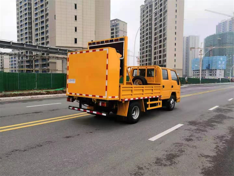 上裝配置:防撞緩沖車尾部設(shè)置防撞緩沖塊,防撞緩沖塊采用液壓升降裝置,還配備車載一體化的電子屏、電子箭頭標(biāo)志牌、頻閃燈及爆閃燈多種警示燈,能夠?yàn)楹蠓杰囕v提供警示和指示方向。箭頭指示標(biāo)志可對左、右及禁止通行進(jìn)行導(dǎo)向指示,對道路車輛提供主動(dòng)安全引導(dǎo)和安全警示,最大限度降低施工對交通流量的影響并確保安全。尾部升降和燈具采用遙控控制,可在車輛附近安全控制防撞緩沖塊的升降和警示燈的開關(guān)。