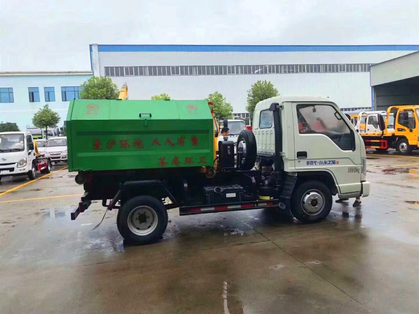 福田勾臂式垃圾車基本詳情采用福田微卡車身,2600mm軸距,福田正宗國(guó)五),5檔變速箱,油剎,2噸后橋,175R14LT輪胎,獨(dú)懸大梁,帶整套燃?xì)庀到y(tǒng),標(biāo)配電子助力。外形尺寸4280×1600×1900(mm)。采用國(guó)標(biāo)碳鋼3mm板材制作,采用武鋼產(chǎn)Q235-A型。 帶電磁取力,齒輪泵,液壓油缸,廂體兩側(cè)開門,帶液壓撐桿,后門帶密封條,帶鎖緊裝置,四角帶滾動(dòng)輪,可自卸。采用好質(zhì)量油漆,車廂外部做防銹處理,車身油漆為白色,垃圾箱為上白下藍(lán)。福田小型垃圾車