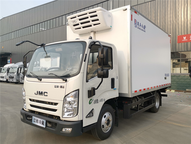 國六江鈴凱運4米2冷藏車基本參數:整車外形尺寸:5995×2270×3190mm,車廂凈空尺寸為:3990×2100×2100mm,車廂容積約為17.6立方,總質量為:4495Kg,整備質量為:3200Kg,額定質量為:1100Kg.車輛符合上藍牌的標準,可進市區,C證可開。國六江鈴柴油發動機,2.8L排量,123馬力發動機,5檔變速箱,整車型號為:JX5043XLCTG26。