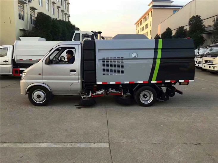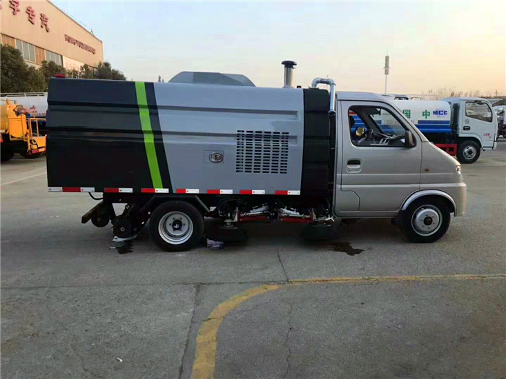 長安小型道路洗掃車掃路車清掃作業(yè)寬度約2.2m,吸入粒度φ80mm,清掃速度每小時(shí)5-20 km,清掃時(shí)可噴霧狀水,全面杜絕二次環(huán)境污染。
