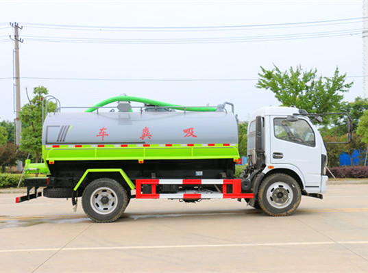 東風國六大多利卡吸糞車壹臺,底盤型號:EQ1125SJ8CDC,采用東風公司原裝底盤,軸距:3800mm,CY4SK361發動機,170馬力,萬里揚6檔變速箱,2030單排駕駛室,2.7T前橋,5.5T后橋,245真空胎,雙層大梁,斷氣剎,空調,電動門窗,中控鎖。罐體采用武鋼優質碳鋼制作。配備大功率水循環吸污泵SK-12,專用功能為:自吸自流自排,吸力大,可吸下水道污泥等含雜質較多的污物,罐體頂部有人孔蓋,吸污吊桿可360度旋轉,帶后自流口,帶視糞管,8米內徑102的吸污管
