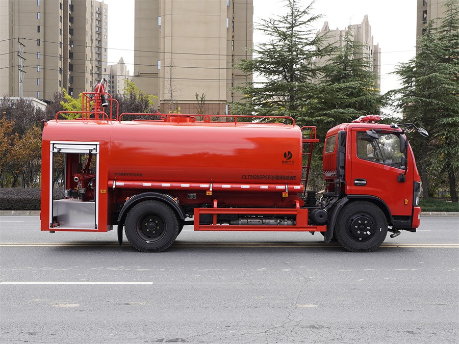 公告型號:CLT5120GPSEQ6型綠化噴灑車 底盤配置:發動機全柴 155 馬力(四缸),萬里揚 6 擋變 速箱,2.1T 前橋, 4.2 噸后橋,8.25 鋼絲胎,軸距3800, 斷氣剎,ABS,空調,電動玻璃,中控鎖。 上裝配置:罐體容積8.5立方,采用4MM優質碳鋼制作,用夾 心取力器,上海雄真20消防泵(后置),成都威斯特20消防 水炮,尾部器材箱,三面卷簾門,另帶灑水前沖,后灑。