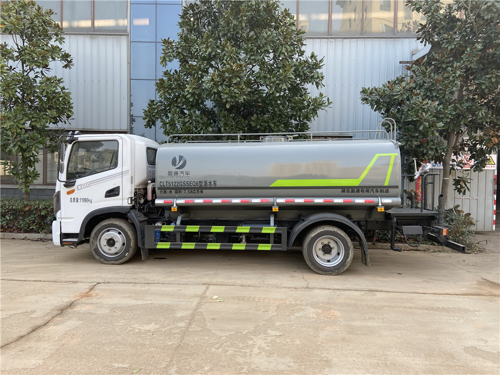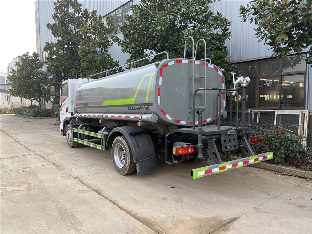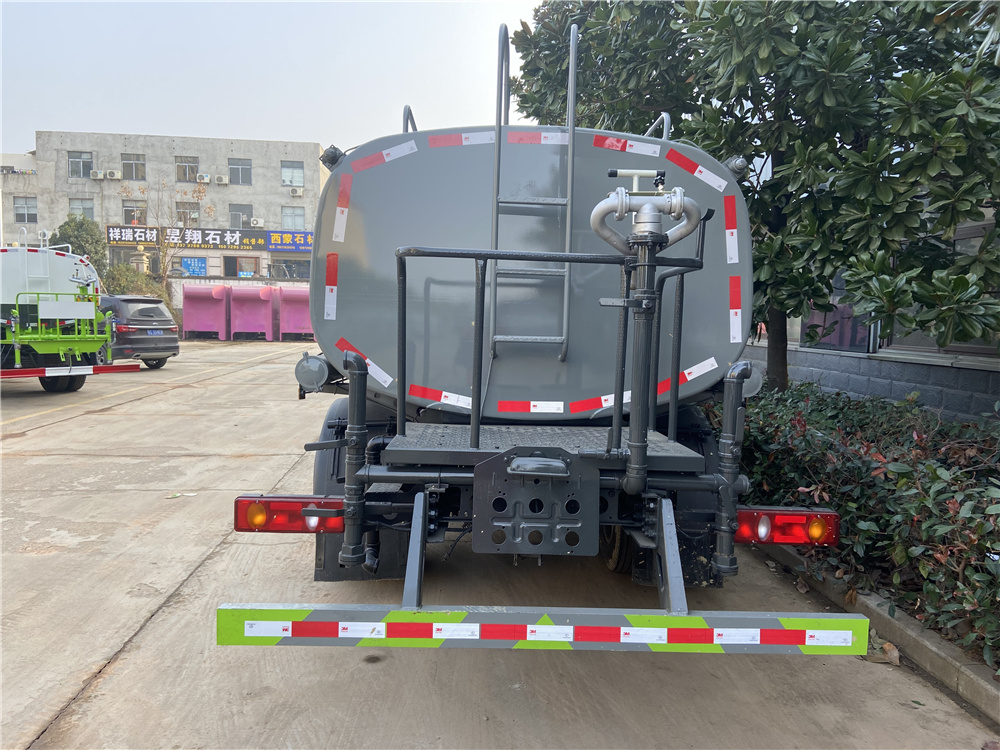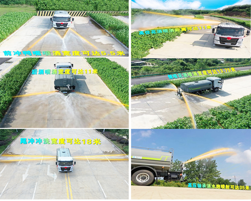 罐體實(shí)際容積約為9.35立方米,采用武鋼優(yōu)質(zhì)碳鋼板卷壓成型。配備專用灑水泵,自吸自排,前噴后灑、側(cè)噴、后工作平臺(tái)及灑水高壓炮。灑水泵自吸高度為6米左右,整車灑水寬度14米左右,后工作平臺(tái)水炮可調(diào)成:直沖狀、大雨、中雨、小雨、霧狀,有效射程≥28米,整車帶接頭、水位計(jì),自流閥。后工作平臺(tái)主管道有一個(gè)一寸的澆花接口,附送2根3米水管,1個(gè)爬梯,兩側(cè)及后保險(xiǎn)杠。