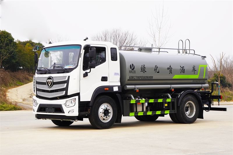 福田歐航12噸灑水車產品標配前噴(鴨嘴)、后沖、后灑、側噴、后置式工作 平臺,平臺上配置綠化水炮(可 360°旋轉,既可以調成柱狀,也可 以調成霧狀,更可以調成直沖狀、大雨、中雨、小雨、毛毛雨),配 備優質大功率專用灑水泵(可自吸自排,可從河里或池塘抽水到罐體), 取力器,雜物過濾網,消防接口,自流球閥系統、取力器、球閥、濾網 均為國家標準產品,主管道加粗,法蘭墊、法蘭盤加厚,大通徑球閥。 整體具備性能優良安全可靠、效率高、流量大、維修方便等特點。