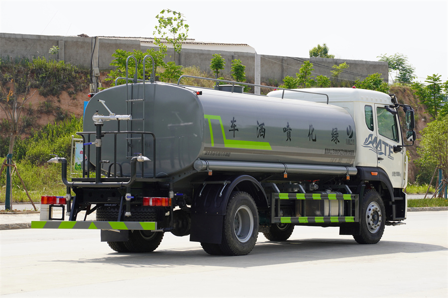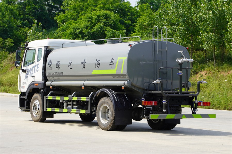 重汽15噸灑水車產(chǎn)品標(biāo)配前噴(鴨嘴)、后沖、后灑、側(cè)噴、后置式工作 平臺,平臺上配置綠化水炮(可 360°旋轉(zhuǎn),既可以調(diào)成柱狀,也可 以調(diào)成霧狀,更可以調(diào)成直沖狀、大雨、中雨、小雨、毛毛雨),配 備優(yōu)質(zhì)大功率專用灑水泵(可自吸自排,可從河里或池塘抽水到罐體), 取力器,雜物過濾網(wǎng),消防接口,自流球閥系統(tǒng)、取力器、球閥、濾網(wǎng) 均為國家標(biāo)準(zhǔn)產(chǎn)品,主管道加粗,法蘭墊、法蘭盤加厚,大通徑球閥。 整體具備性能優(yōu)良安全可靠、效率高、流量大、維修方便等特點(diǎn)