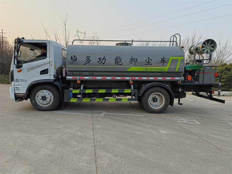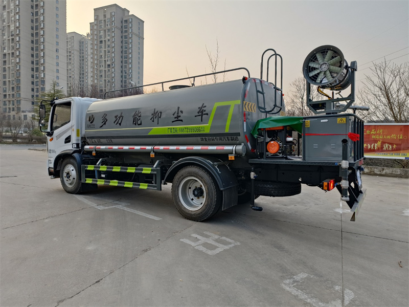 東風新款8-10噸霧炮灑水車標配前噴(鴨嘴)、后沖、后灑、側(cè)噴、后置式工作 平臺,平臺上配置綠化水炮(可 360°旋轉(zhuǎn),既可以調(diào)成柱狀,也可 以調(diào)成霧狀,更可以調(diào)成直沖狀、大雨、中雨、小雨、毛毛雨),配 備優(yōu)質(zhì)大功率專用灑水泵(可自吸自排,可從河里或池塘抽水到罐體), 取力器,雜物過濾網(wǎng),消防接口,自流球閥系統(tǒng)、取力器、球閥、濾網(wǎng) 均為國家標準產(chǎn)品,主管道加粗,法蘭墊、法蘭盤加厚,大通徑球閥。 整體具備性能優(yōu)良安全可靠、效率高、流量大、維修方便等特點